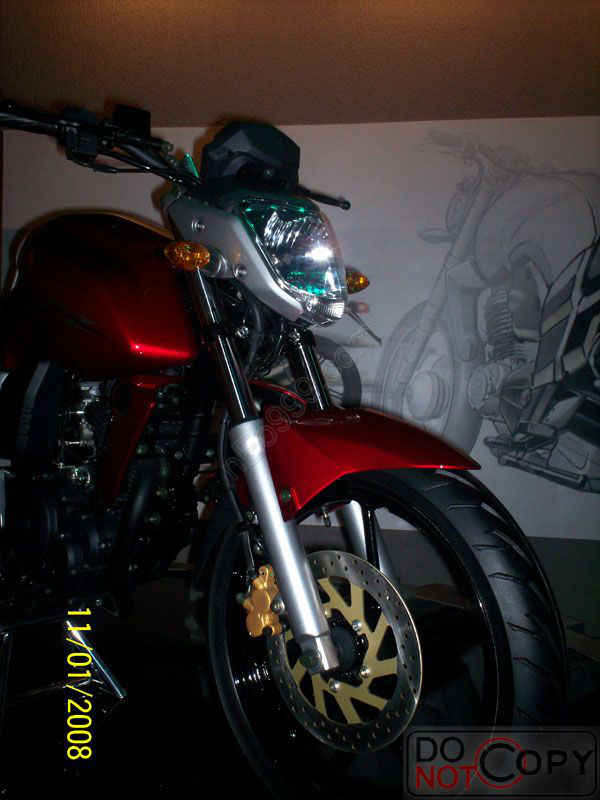 Like the Yamaha YZF R15 has racing technology from R1 like six-speed transmission , the Yamaha FZ 150 is being toned down to 150 cc from the existing global version of 1,000 cc.It is 150cc (non FI) , 5 Speed Gear box, Air Cooled and have Monoshock suspension Yamaha FZ 150 will be launched in October 2008.Photos